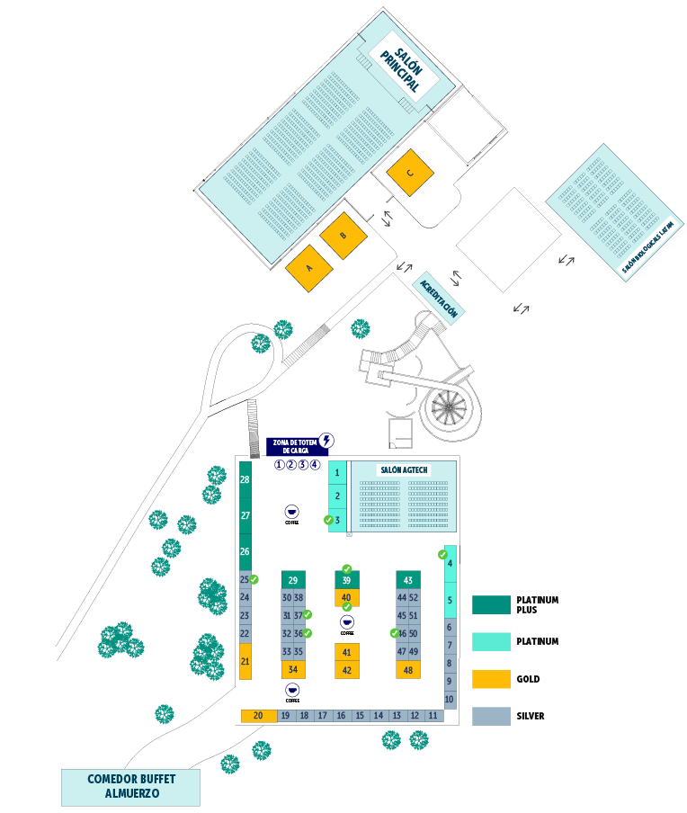 ** Los días del evento tendrá acceso a la transmisión online de charlas del Salón A. Las charlas grabadas de los salones A y B estarán disponibles en la plataforma Educación Redagricola en un plazo no mayor a 15 días después de realizado el evento.